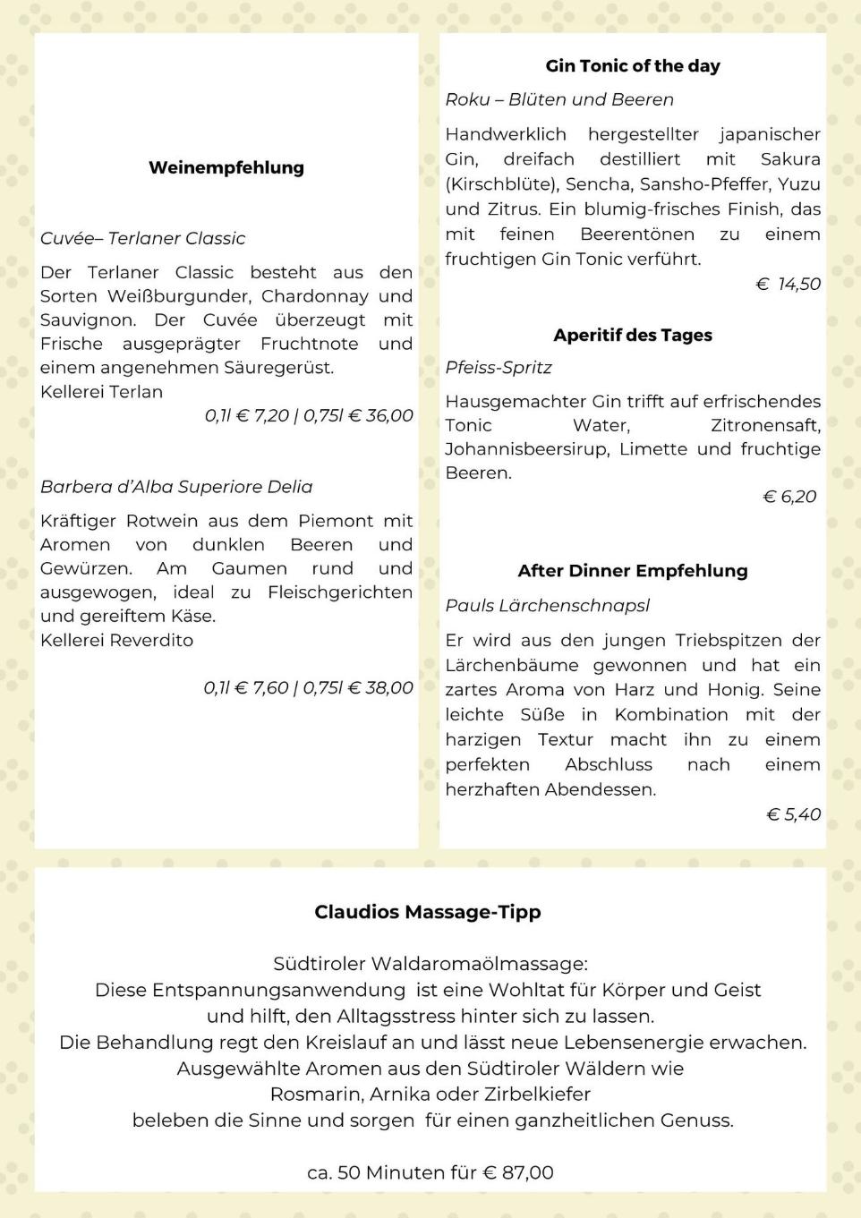 Drink menu